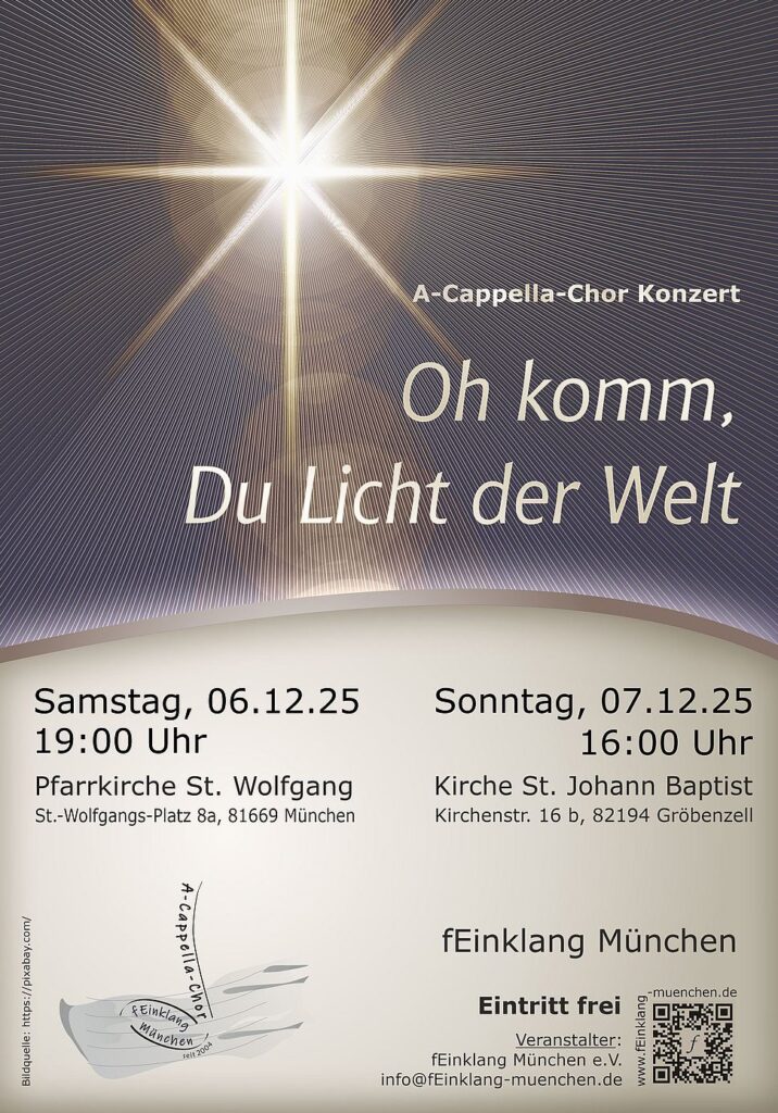 Geistliche A-Cappella Chormusik zum Advent mit Stücken von Bach, Homilius, Brahms, Mendelssohn Bartholdy u.a. Jesu, meine Freude, BWV 227 (Johann Sebastian Bach) Hark! The herald angels sing (Felix Mendelssohn Bartholdy) […]